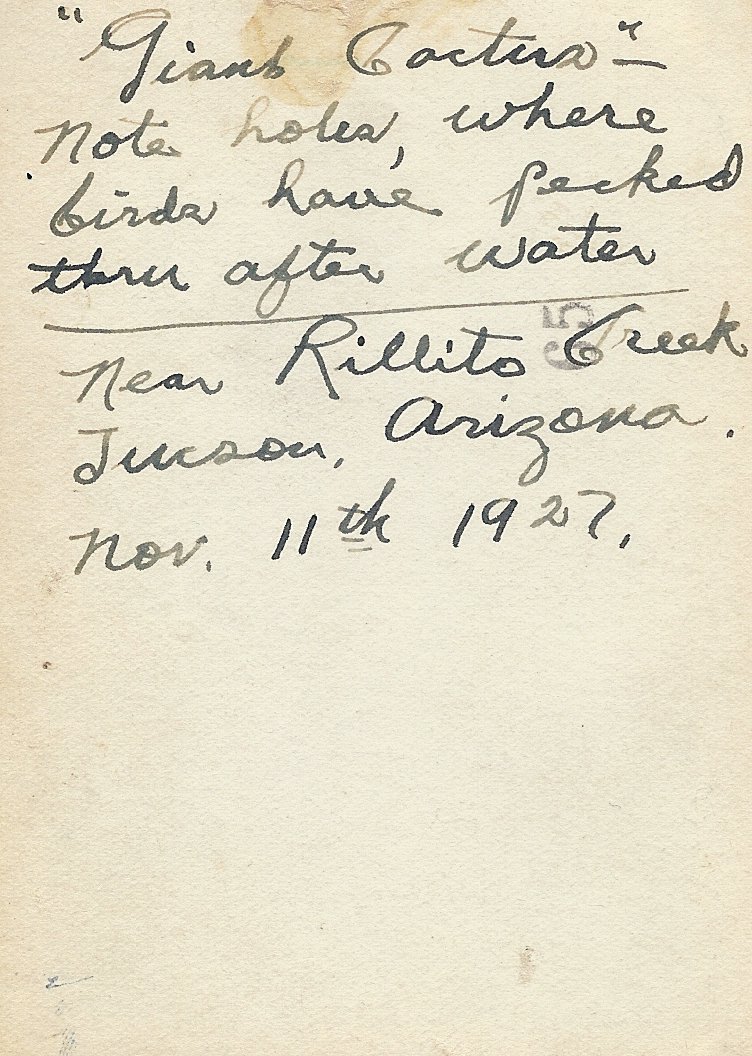The other day I was going through some old photos and found one of cacti.  Yes, cacti.  On the back was written a detailed description of the photo, including the month, day, and year.  I looked on the back of many other photos with people in them, and nothing was written.  Why is it that the cacti were more important than the people?  Or was it that when the other pictures were taken, the people never thought ahead to a time when a granddaughter or a great granddaughter might be looking at those pictures and want as much information as she could get?  Maybe they were enjoying the moment and not looking to a distant future.  But now I am left with so many questions and no one to give me answers.