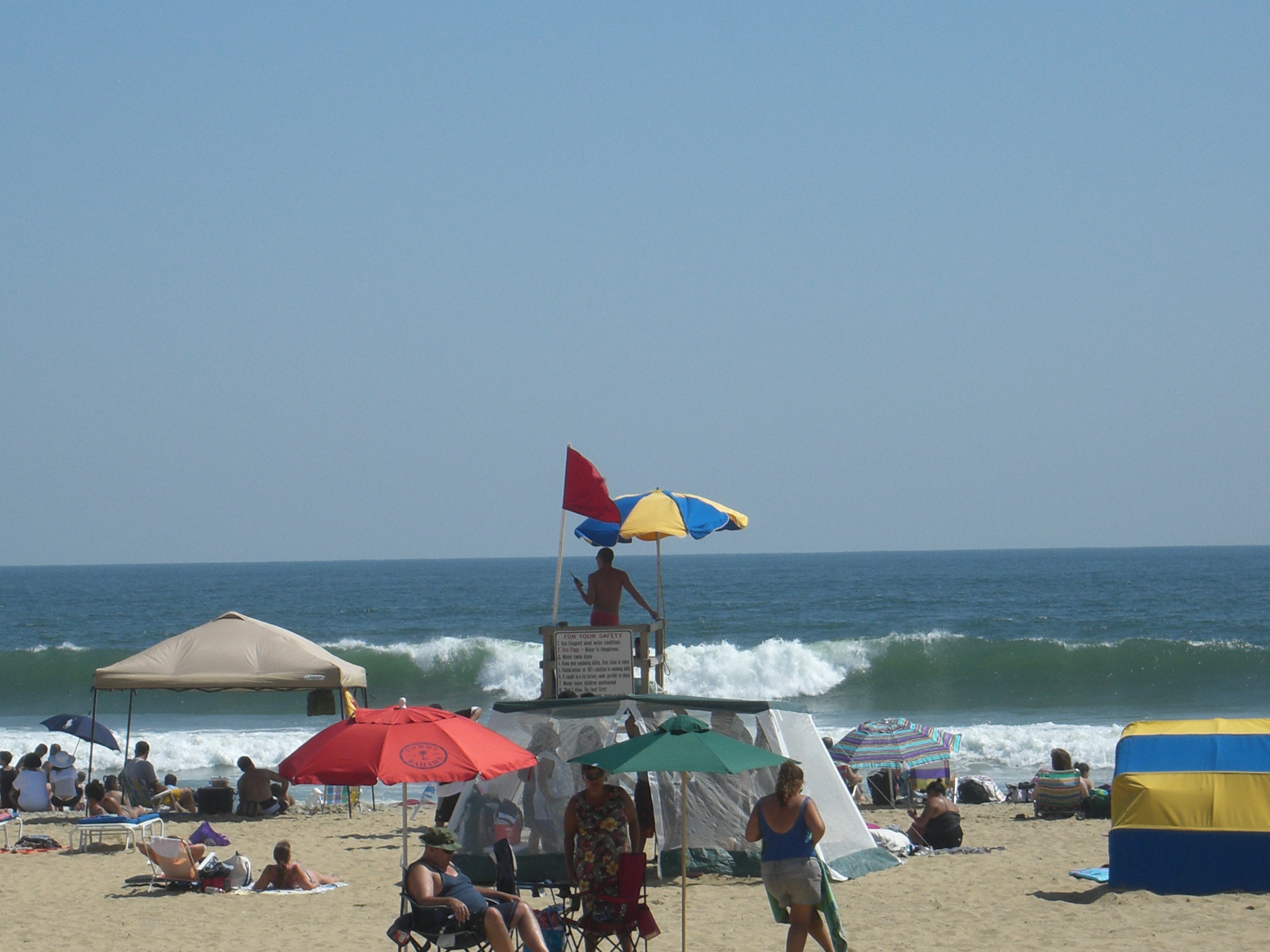 I went back to my chair, closed my eyes, and lost all track of time as I listened to the sounds around me:  the whoosh of the waves, the squeals of the children as the cold water crashed over them (though my sons, used to Cape Cod waters would find our ocean perfectly tepid), the humming engine of a passing boat, the shriek of a lifeguard’s whistle.  I opened my eyes and was surprised at how fast the beach had filled up.   People had begun setting up their beach chairs, umbrellas, and cabanas close to me.  Too close.  I checked my watch, and with a sigh, packed up and headed for the car.