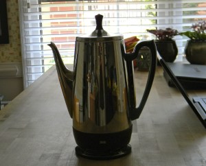 First, I have a 40-year-old G.E. percolator.  This predates the grind and brew drip systems and the coffee makers that use a little pod for each cup.  It has been making great coffee for 40 years, outlasting five drip machines.  No stainless steel carafe is needed because it is stainless steel.  Though it is definitely a great find, it is not nearly as valuable as my yellow enamelware stove-top percolator would be if I still had it.  For the edification of you youngsters, we actually used to make our coffee on top of a fire to rave reviews.  Electricity hadn’t been invented yet.