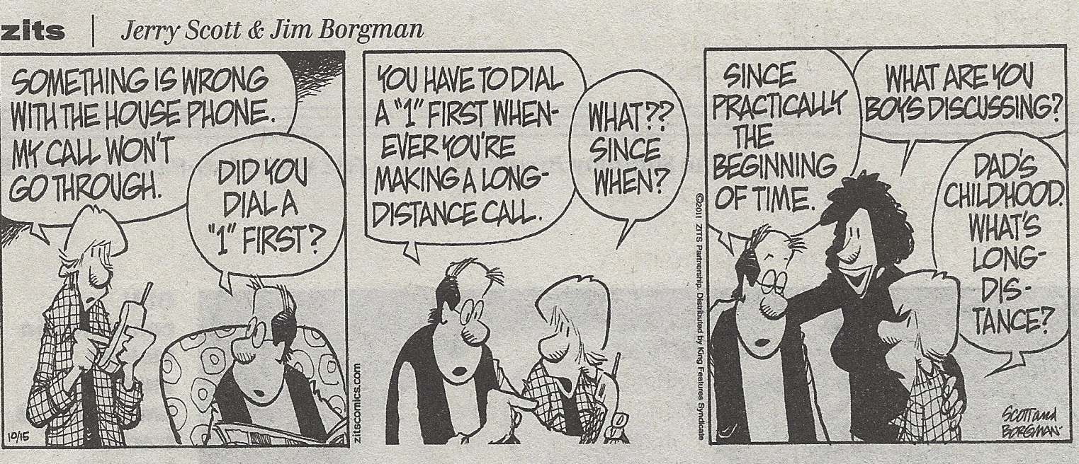 Most kids these days have always used cell phones.  Many homes don’t even have land lines anymore, so how would kids know about dialing “1” before calling out of their area code, or know what long distance meant?