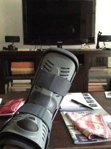 The doctor said twelve weeks with this boot and it’s been two weeks today, so ten to go. Of course, that means the whole summer, even when we go to Cape Cod. I’m hoping that when I go back for my next visit in less than two weeks, the doctor will let me start putting some weight on it. That would make life so much easier for me, and a ton easier for poor hubby who is doing EVERYTHING.