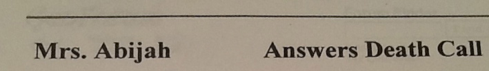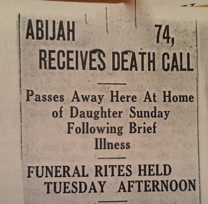 However, when my brother and I saw this obituary in our genealogy records, we agreed that euphemisms can go too far. We are stating here and now that if Death calls, we are definitely not picking up the phone. We are going to let it ring and ring. Obviously, people didn’t have caller I.D. in those days. Otherwise, when Abijah’s wife received the same call, she would have had Death leave a message.